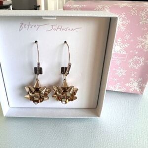 NWT Betsey Johnson Wrap Me Up Gold Christmas Bow Holiday Earrings Rhinestone Pave