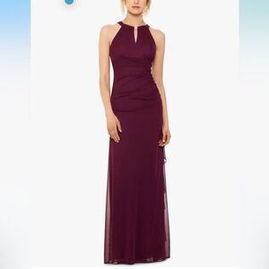NWT Betsy & Adam | Petra Sheer Matte Embellished Keyhole Evening Dress Purple 6