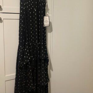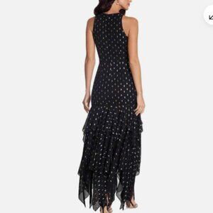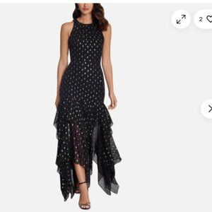 NWT Betsy & Adam Clipped Dot Chiffon Dress Size 6, Black with Metallic Detail