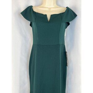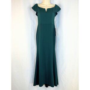 NWT Betsy & Adam Hunter Green Crepe Off The Shoulder Mermaid Gown $239