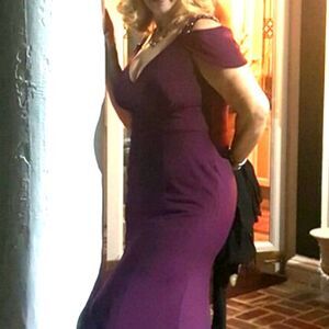 NWT! Betsy & Adam Jeweled Wine Color Size 4 Formal Gown Peek A Boo Sleeve