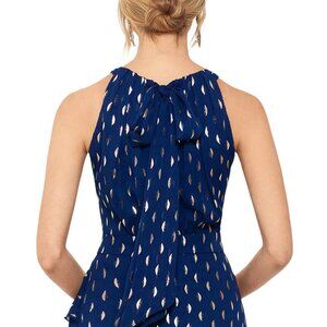 NWT Betsy & Adam Metallic Chiffon Front Ruffle Slit Halter Neck Sleeveless Gown