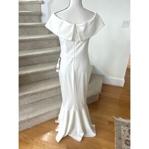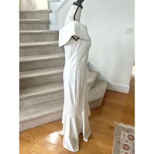 Excellent NWT condition. Maxi length, sheath style with flared mermaid bottom. Off the shoulder, back zipper, ruffle down hip.