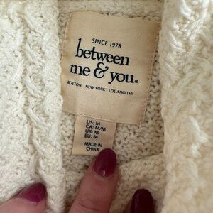 NWT Between Me & You Cream Cowl Neck Seater- Size Medium