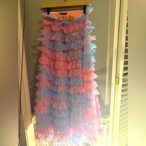 NWT Beulah Sheer Pastel Pink and Blue Ruffled Skirt