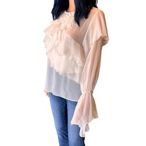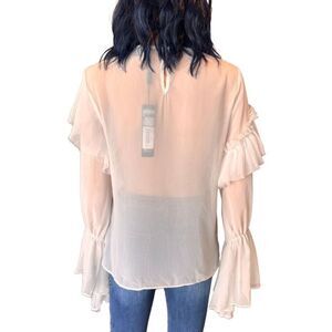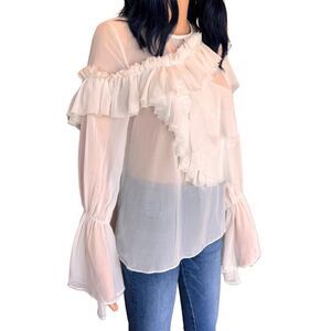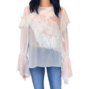 NWT Beulah Style White Sheer Ruffle Long Sleeve Blouse