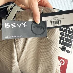 NWT Bevy Flog Tan/White Micro Plaid Pants Straight Leg Mid Rise Women's Size 27