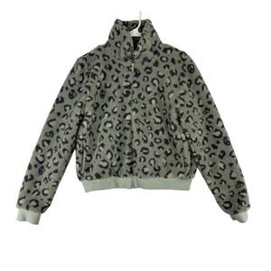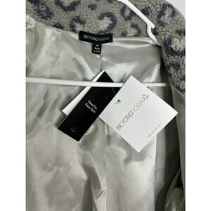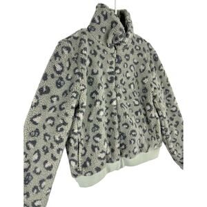 NWT Beyond Yoga Jacket Womens Gray Cheetah print Sherpa Zip Up Collared size M