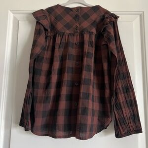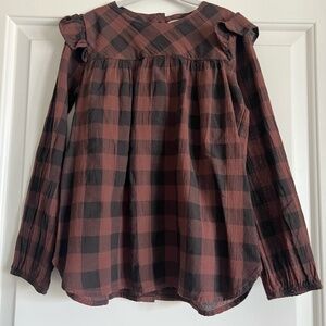 NWT Búho Ruffle Long Sleeve Checkered Blouse size 5/6