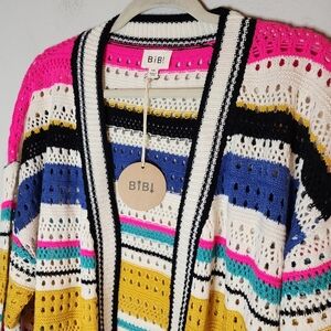 NWT Bibi Knit Multi Striped Pointelle Cardigan. Size 1X.