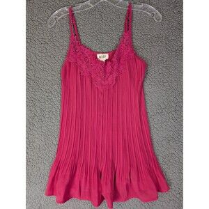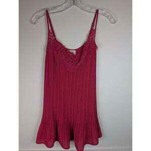 NWT Bibi Pleated Tank Top Lace Top Size Small Spaghetti Straps Raspberry Pink