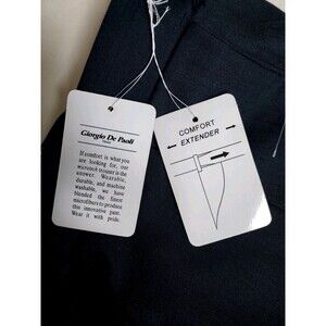 These NWT Big Mens Giorgio DePaoli Navy Pleated Extender Dress Pants in size 54 feature a solid blue color and a zip closure. Made of 90% poly microfiber and 10% rayon, these pants offer a comfortable fit with an extended waist and a straight leg style. The raw hem allows you to personalize the length, while the slash pockets provide convenience. Perfect for a business or dressy occasion, these pants are machine washable for easy care and maintenance.