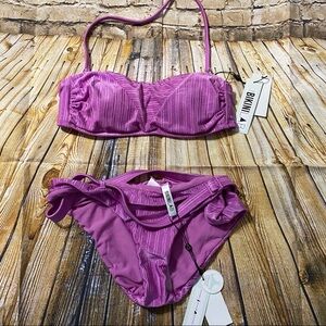 The Bikini Lab Womens Medium Fuchsia Two Piece Bandeau Bikini Swimsuit new with tags.