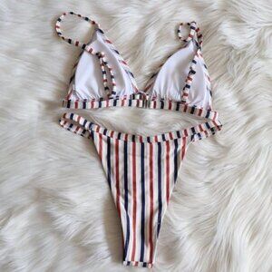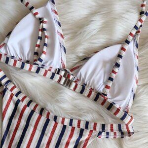 White Red Blue Gold Stripe Sexy Bikini Set Size Medium