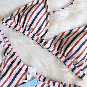 NWT Bikini Set Size Medium White Red Blue Gold Stripe Print Bathing Suit Pool