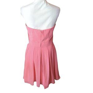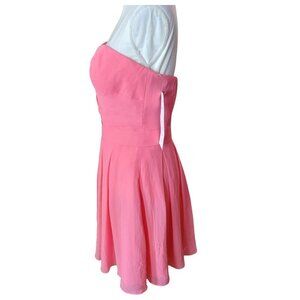 Lovely pink flowy dress by Bill Levkoff in a size 10. It has a flowy skirt that swirls when movement occurs. The dress is strapless with a sweetheart neckline. It has 2 spaghetti straps that can be attached. The bodice is padded and has cross pleats for a lovely design. The dress is pleated and has a band at the waist. The back has a zipper. Would be great for an evening out or a formal event.