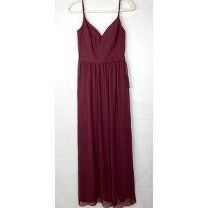 NWT Bill Levkoff Ryan Wine Chiffon V-Back A-Line Maxi Dress Gown 4