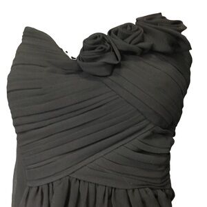 NWT - BILL LEVKOFF Style #109 Black Chiffon Strapless Short Formal Cocktail Dress with Shirred Crisscross Bodice and Rosettes along the top of the Bust-line. The skirt is lined with satin. There are removable spaghetti straps and a hidden zipper in the back. Perfect dress for a bridesmaid, mother of the bride/groom, prom, homecoming or any special occasion!