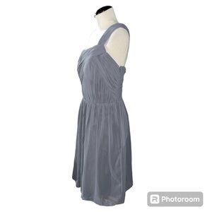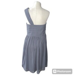 NWT Bill Levkoff cocktail dress size 10 gray one shoulder draped chiffon prom