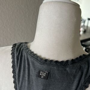 NWT BillaBong Gray Tank Racerback Lace Flowy Lose Fit S Aztec Boho Sheer