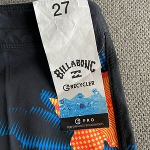 NWT Billabong Boys' Sundays Pro Boardshort, no liner, 27 waist, "Neon Night"
