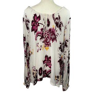 NWT Billabong Distant Roads Cream & Floral Boho Peasant Top Blouse Size …