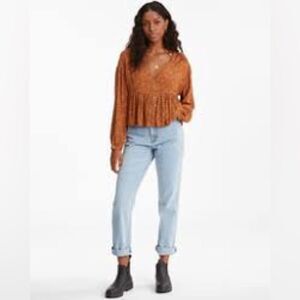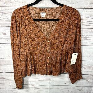 An all-in-one top that carries you through workdays, weekends, and holidays with friends. The Easy Street long sleeve blouse makes looking good easy— hence the name. Made with silky-soft crinkle fabric, this women's blouse from our Under The Palms Collection features front buttons, a V-neckline, and a peplum ruffle that adds playful movement to your look. Nothing too tight or clingy here, the relaxed fit keeps you all-day comfy. And let's not forget that bold print! Now your feeling good and looking fine, no matter what the day brings your way.