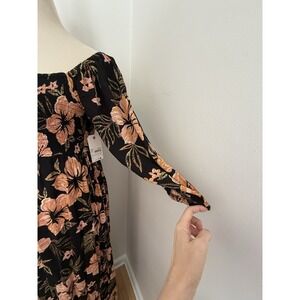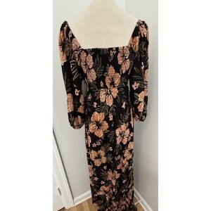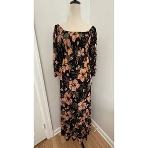 NWT Billabong Full Bloom Smocked Maxi Dress Hibiscus Print Women's Size Large