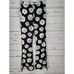 NWT Billabong Hang Loose Black White Floral Boho Pull On Flare Knit Pants Size X