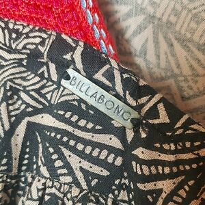 NWT Billabong Long Weekends Romper Geometric Abstract Tribal Aztec Ethnic Black And Cream Salmon Pink Crochet Straps Pockets Plunge Exposed Zipper Back Size Womens Medium