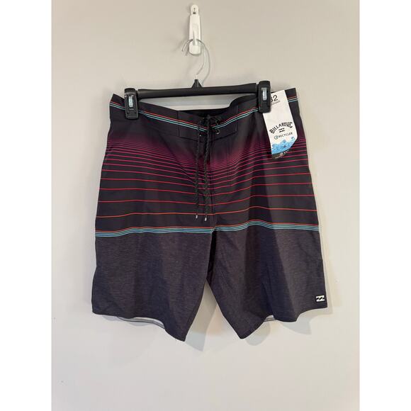 NWT Billabong North Point Pro Boardshorts Black & Red Striped Size 32 – Performance Surf Swim Trunks