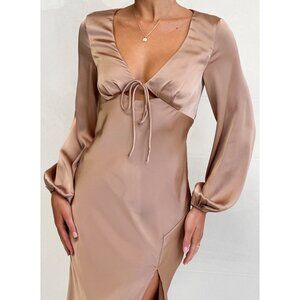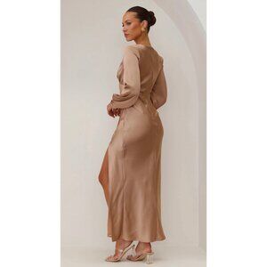 NWT Billy J Brigitte Satin Tie Front Maxi Dress With Slit Party Wedding New 20