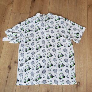 NWT Bioworld Mens Size L White Golf Button Down Hawaiian Shirt A Tee-Rific Time