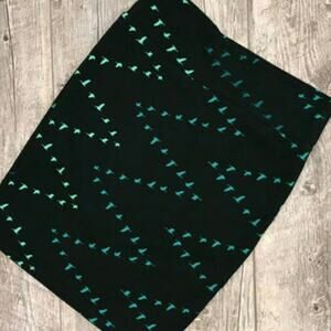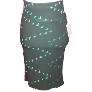 NWT Bird print Lularoe midi length skirt "Cassie", hunter forest green, sz XS