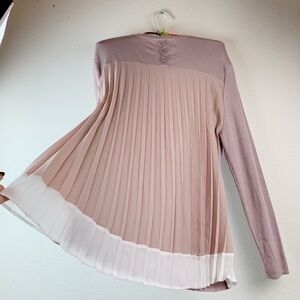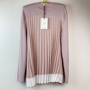 New with tags Joh apparel from Birdie James. Suma top, fine sweater knit top with knife accordion pleated (non see through) chiffon back and long sleeves, in a dusty rose mauve color.