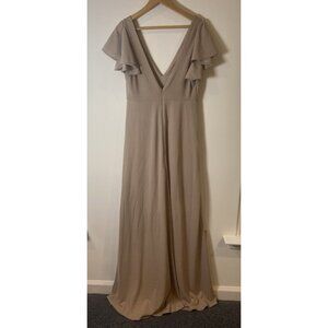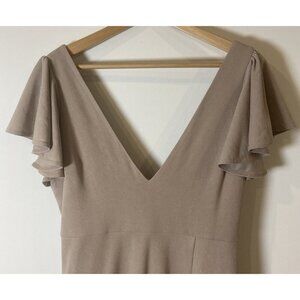 NWT Birdy Grey Hannah Dress Empire Waist Flutter Sleeve Taupe Large L New