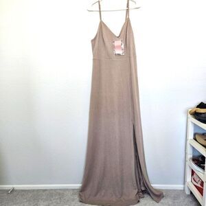 NWT Birdy Grey | Jay Long Dress Crepe Leg Slit In Taupe, Womens XL
