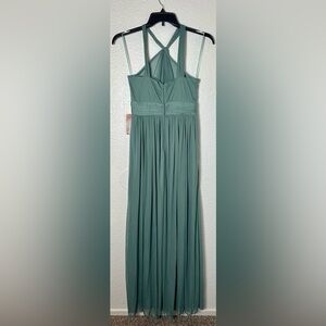 Revel in the beauty of your inner Greek goddess in this softly ruched high-neck halter bridesmaid dress.