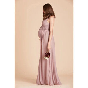 NWT Birdy Grey Lianna Maxi Dress Twisted V-Neck Empire Waist Mesh Mauve Size M