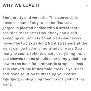 Brand new, never worn! I was supposed to be a bridesmaid in a wedding that had to be rescheduled because of COVID! Then they ended up eloping, so I never needed it!