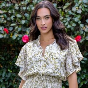 NWT Bishop & Young Floral Flutter Sleeve Smocked Mini Dress