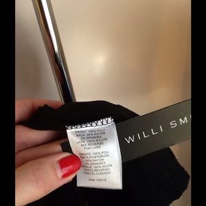 New with Tag, TJ Maxx, black lace front bodice, sheer upper shoulder top, solid back knot type material, ploy, lace, nylon. Size Large, machine wash cold delicate, tumble dry low, Willi Smith
