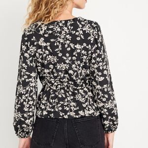 NWT Black Cream Floral Peplum Ruffle Blouse L