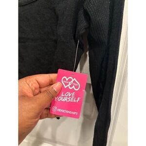 Long sleeve ribbed black tee. Cropped, fitted. Has a lettuce edge. Has more of a U neck. New with tags!