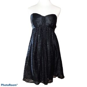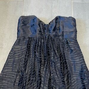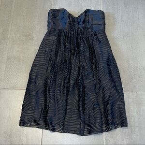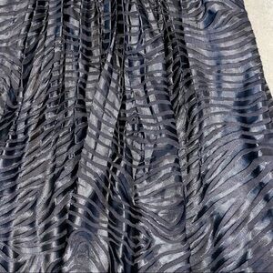 Shiny black material with a semi sheer black zebra print overlay. Fully lined with a back zipper closure.