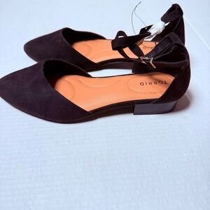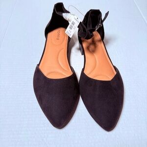 NWT Black Faux Suede Ankle Strap Ballet Flat (WW) 11.5 NWT