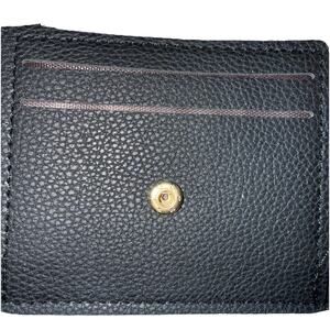 This NWT black faux leather card wallet, coin purse with key ring is a stylish and practical accessory for women. The solid black color and sleek design make it versatile for everyday use. With a compact size of S (4 1/2 inches in length and 3 1/2 inches in width), it is perfect for keeping your credit cards and coins organized while on the go. The wallet features a zipper closure and is made of faux leather, offering a durable and chic option for carrying your essentials.