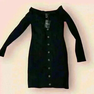 New with tags! Black Front Button Stretch Long Sleeve Mini Dress in Size Small. Elevate your style for date night with this chic and comfortable piece.