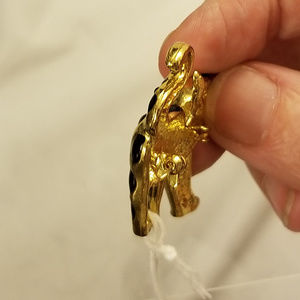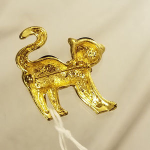 NWT Black Gold Cat Pin Brooch Glass Crystal Collar