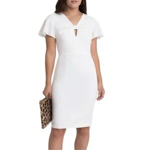 NWT Black Halo Abanna Flutter Sleeve Gathered Keyhole Front Sheath Midi Dress
